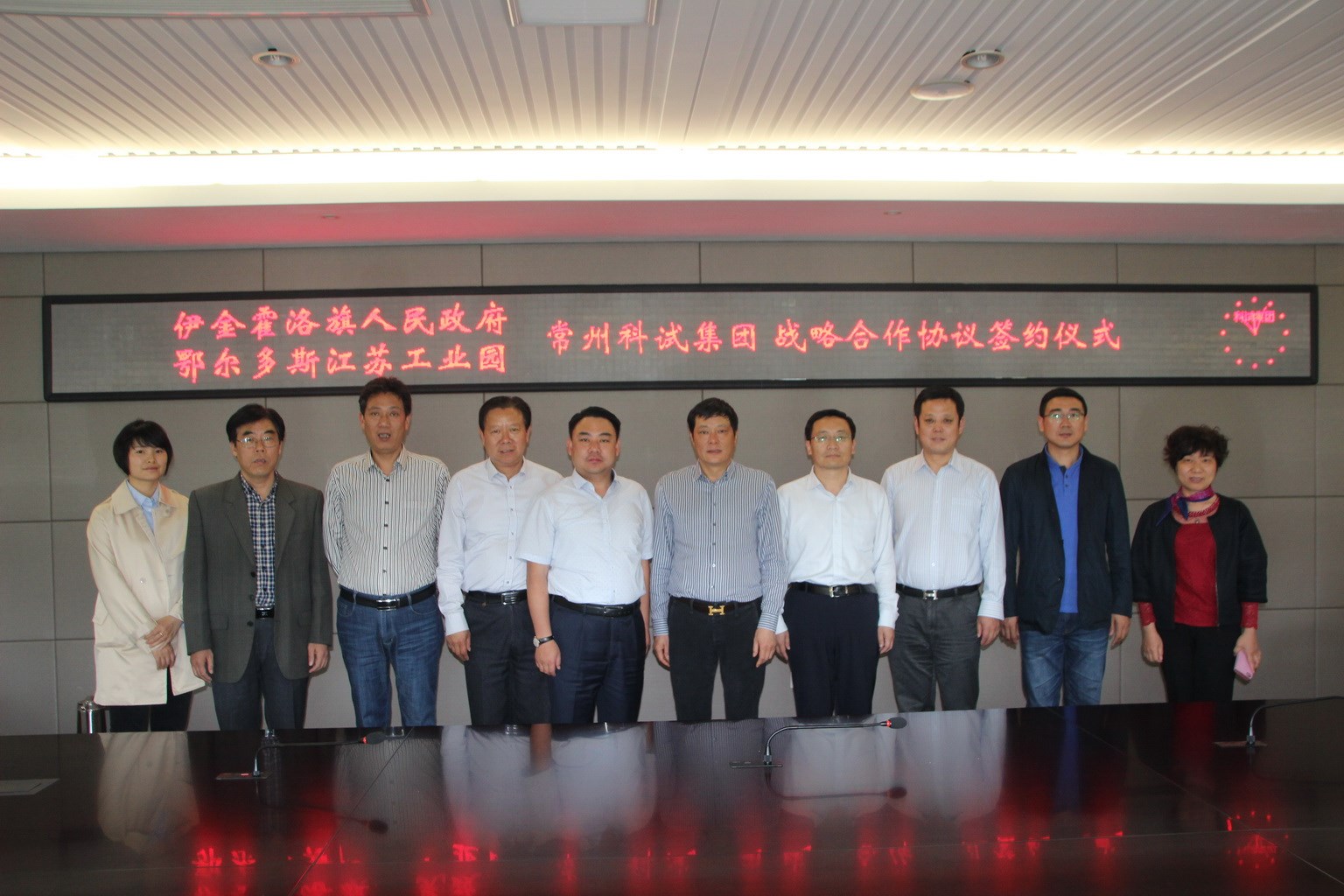 4月24日,伊金霍洛旗人民政府黨組成員,鄂爾多斯江蘇工業園區管委會副主任邊永祥帶領旗招商局負責人赴常州與常州科試集團進行考察洽談,雙方經過深入交流后,邊永祥代表旗人民政府與常州科試集團簽訂了戰略合作協議,雙方將進一步深化合作,在互惠互利的基礎上,推動雙方的合作交流更深層次、更寬領域,更高水平發展。