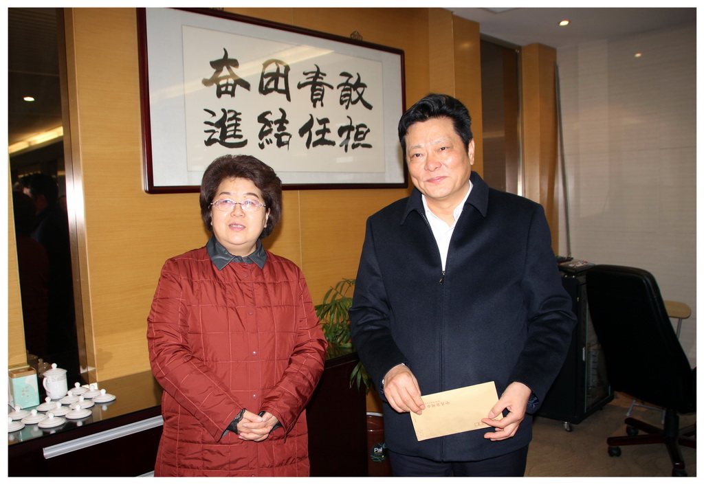 2022年1月27日,在新春佳節即將來臨之際,集團董事長、總裁姜漢軍接受了常州市政協主席白云萍帶領市、區領導送來的市杰出人才慰問金,并將全部獎金3000元捐贈給公司的愛心基金,推動愛心基金的發展。