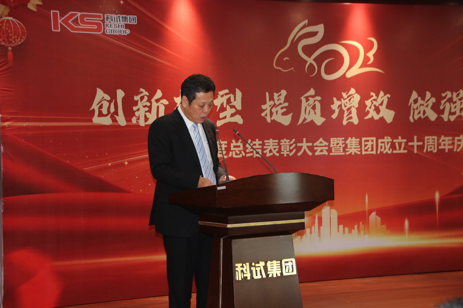 科試集團2022年度總結表彰大會暨集團成立十周年慶典于2023年1月16日下午在集團食堂隆重召開。科試中心代表、技服公司在常人員在現場參加了大會,內蒙基地及分宜驅動橋公司分會場通過視頻連線在線參加會議,大會由集團副總裁王眉林主持。