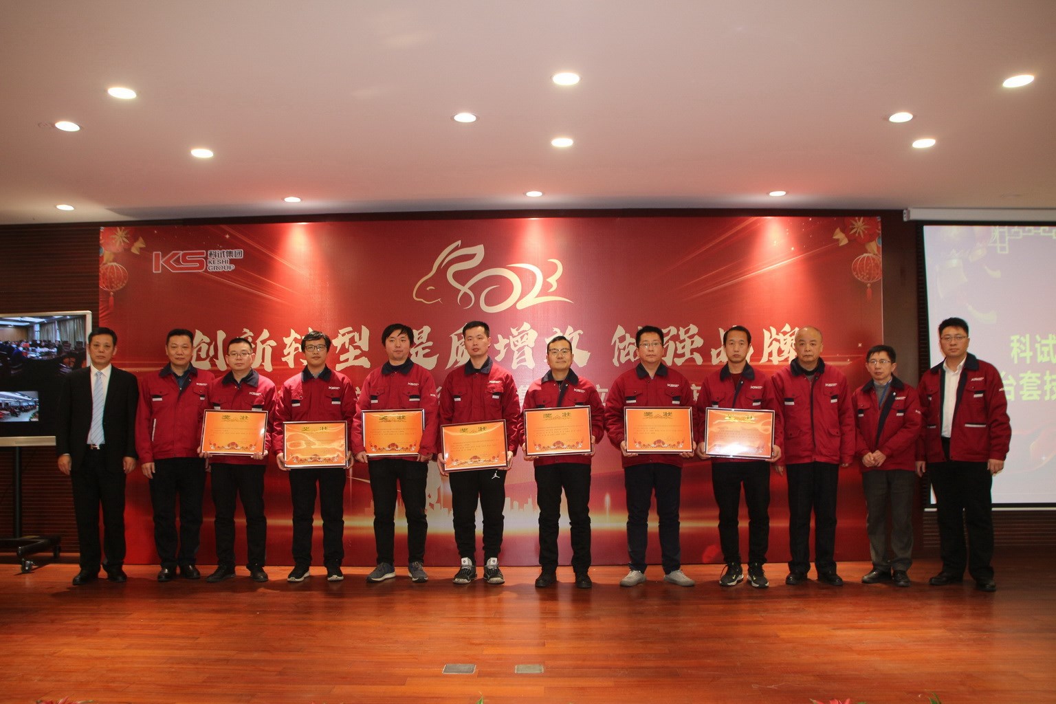 會上,集團副總裁王眉林、關金學、顧祖全、驅動橋公司總經理張鳳儀分別代表科試中心、技服公司、瀚明伯公司、驅動橋公司對2022年的工作進行了總結,并對2023年的工作進行了部署。大會現場隆重表彰了優秀員工、標兵、優秀團隊、首臺套技術創新成果以及技術革新成果。來自各公司、各職能部門的標兵和優秀團隊代表分別作了獲獎感言。