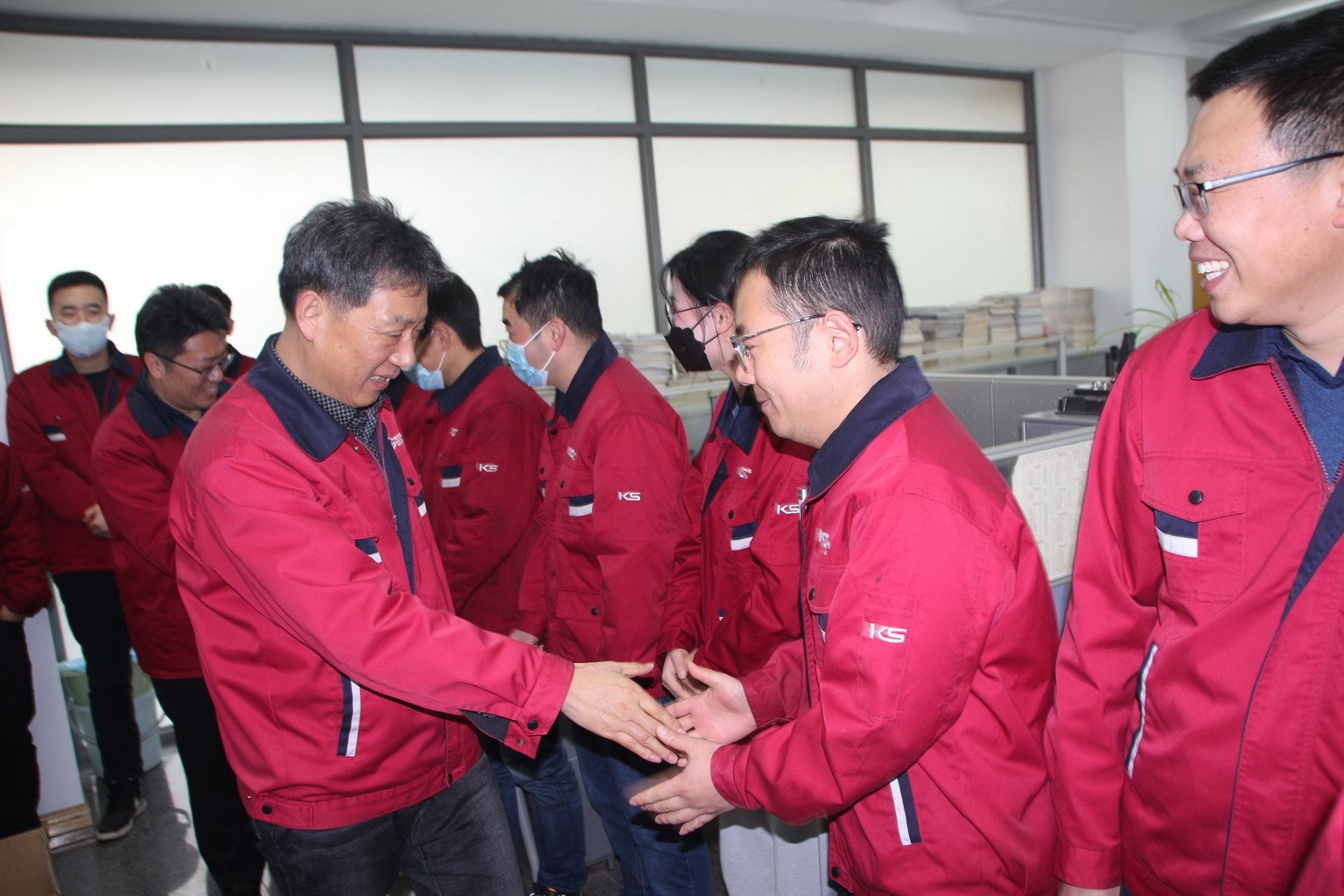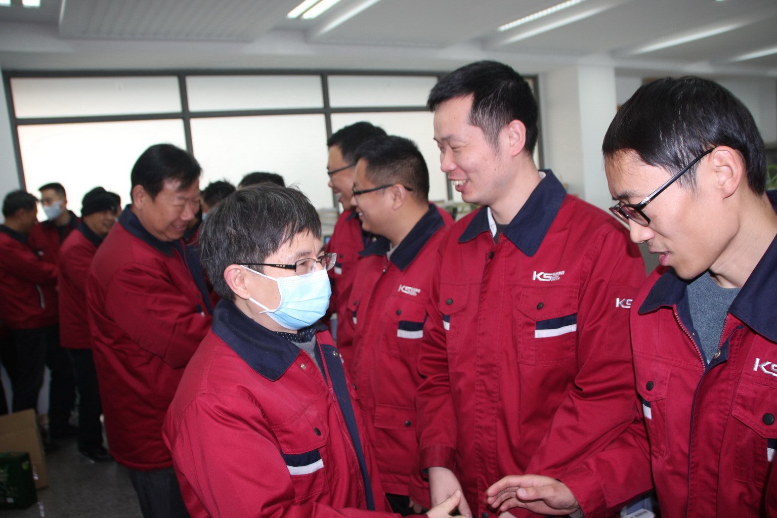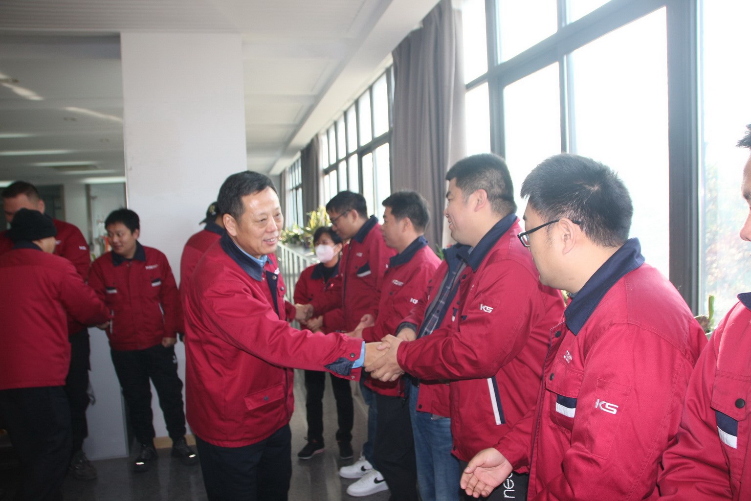 集團副總裁王眉林、關金學、顧祖全帶領領導班子前往公司各個車間、職能部門拜年,給員工們發放開工紅包并送上真摯的新春祝福。