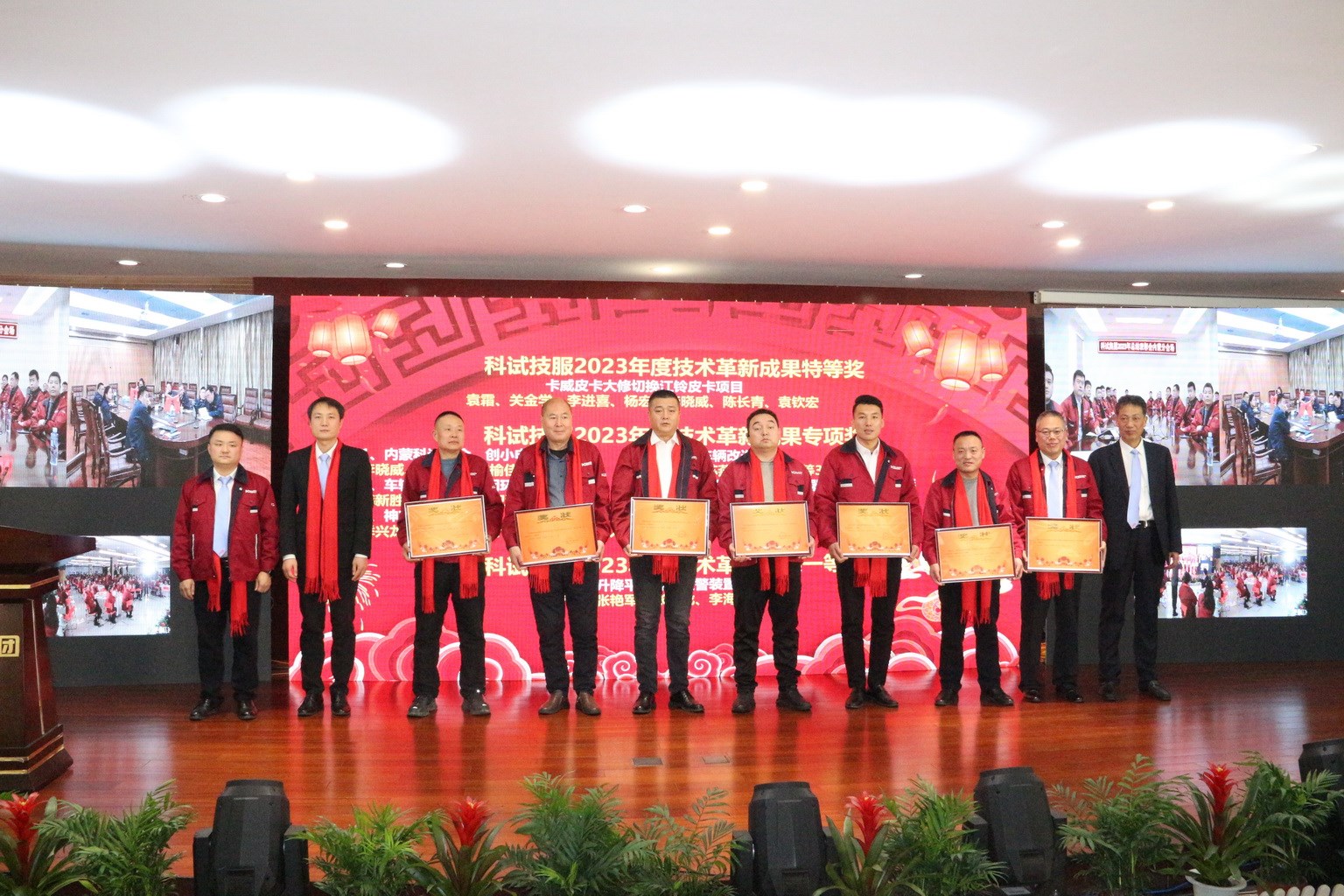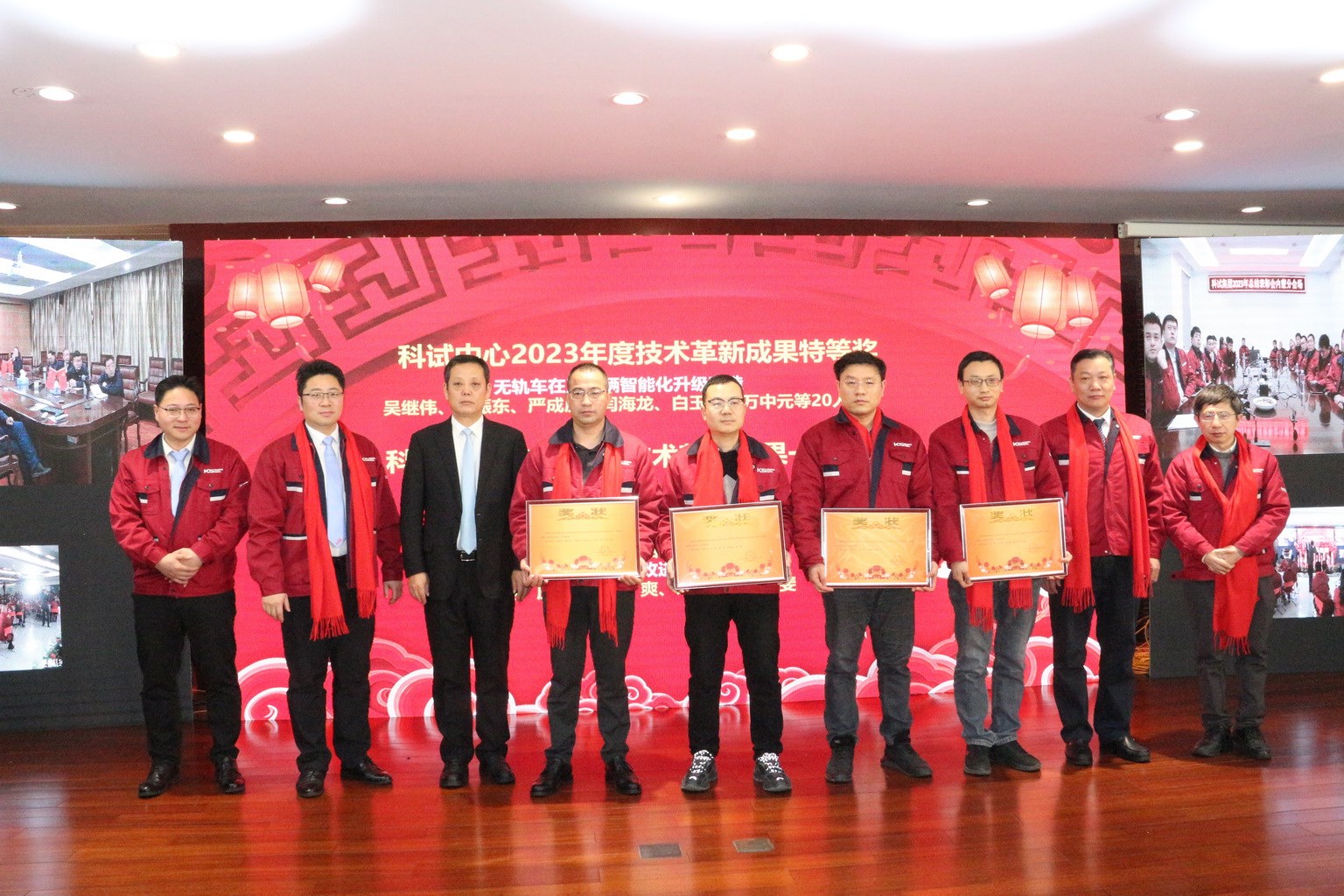 玉兔辭舊歲,金龍迎新春!2024年2月2日,科試集團2023年度總結表彰大會暨2024年新春團拜會在集團公司食堂大廳隆重召開??圃囍行膯T工、技服公司代表、分宜驅動橋公司代表、美國翰明伯公司代表等歡聚一堂,總結過往,展望未來,激勵先進,鼓舞干勁,共迎新春佳節。內蒙基地及分宜驅動橋公司分會場通過視頻連線在線參加了總結表彰大會,大會由集團副總裁、科試中心總經理王眉林主持。