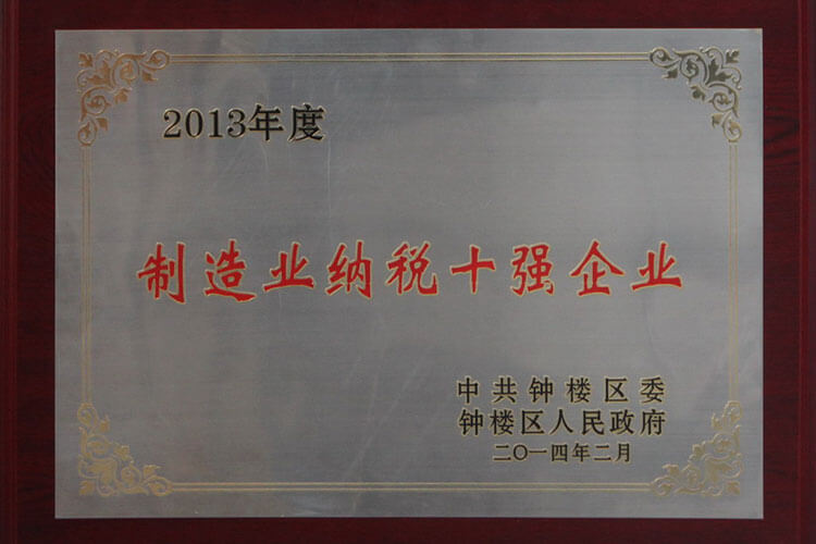 公司被鐘樓區委、區政府授予“制造業納稅十強企業”,公司董事長兼總經理姜漢軍被鐘樓區委、區政府授予“優秀企業家”的榮譽稱號。
