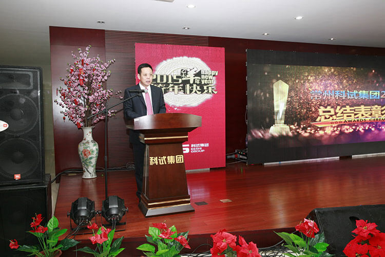 2015年2月13日下午,科試集團舉行2014年度工作總結表彰大會暨2015年新春團拜會。公司董事長兼總經理姜漢軍作工作總結報告,報告全面總結了過去一年的工作成績,提出了存在的問題和對新的一年展望。會上,公司對2014年度優秀員工、技術革新專項獎、技術革新成果獎、優秀團隊、首臺套技術創新獎、標兵進行了隆重的表彰和獎勵。會后舉行了別開生面的新春游藝活動,晚上舉辦了新年團拜會。