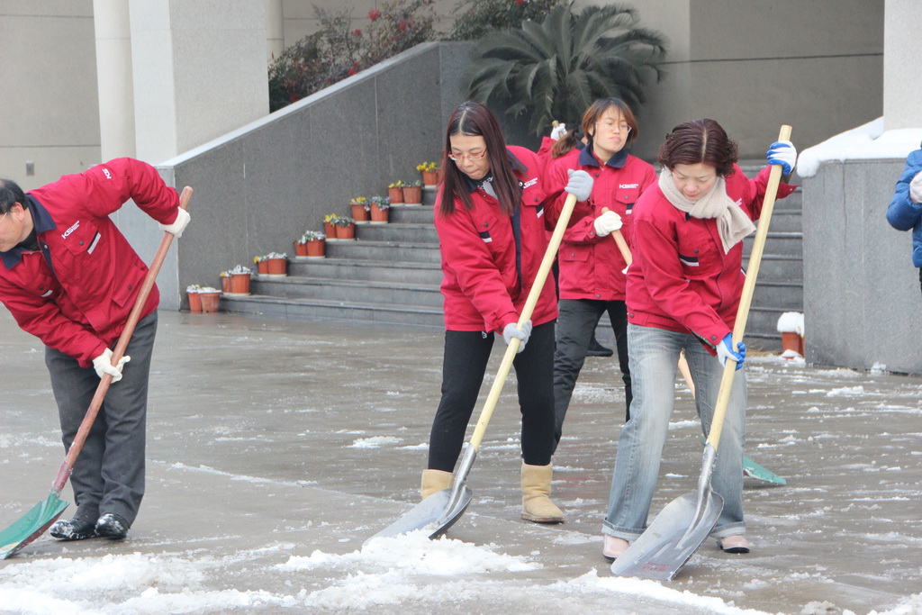 2018年初大雪的降臨,把整個科試集團裝飾的銀裝素裹。在成為美景的同時,也給員工造成了許多不便,為確保早日恢復正常的生產秩序,解決廣大員工的后顧之憂,公司在姜漢軍董事長帶領下,組織了部分中高層管理者和部分員工、保安組成的義務除雪活動。刺骨的寒風肆無忌憚的呼嘯,擋不住大家的滿腔熱情,經過幾個小時的共同努力,員工們清掃出了主要通道,望著自己的勞動成果,大家的臉上都洋溢著勝利的喜悅。
