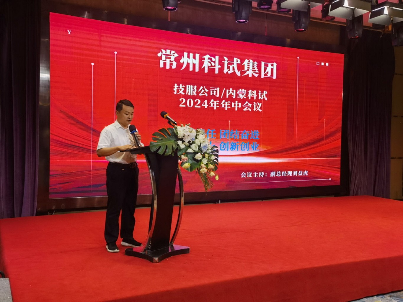 7月13日,常州科試技術服務有限公司2024年下半年工作會議在寧夏銀川順利召開,集團公司副總裁、技服公司總經理關金學、副總裁顧祖全等公司主要領導及各運營部經理、服務隊隊長共47人參加了會議。會議主要總結了上半年工作目標完成情況,安排部署下半年工作。會議由技服公司副總經理劉益虎主持。