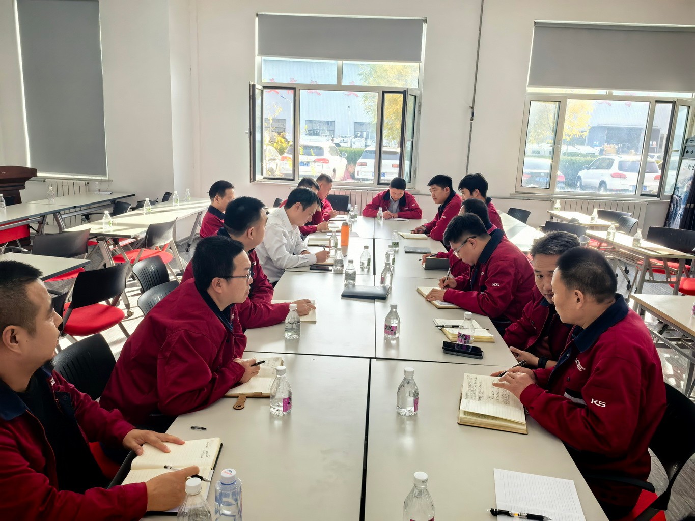 10月26日下午,技服公司/內(nèi)蒙科試在伊旗基地召開了四季度工作會議。集團(tuán)公司副總裁兼技服公司總經(jīng)理關(guān)金學(xué)、集團(tuán)公司副總裁顧祖全、集團(tuán)公司董事長助理兼財務(wù)總監(jiān)姜昱、集團(tuán)公司人力資源部副主任孫思丹、內(nèi)蒙科試公司領(lǐng)導(dǎo)、寧夏分公司領(lǐng)導(dǎo)、各部門領(lǐng)導(dǎo)、各服務(wù)隊隊長等52人參加了會議。會議主題為“工作目標(biāo)完成情況;規(guī)劃和奮斗四季度,確保完成全年工作目標(biāo)”。
