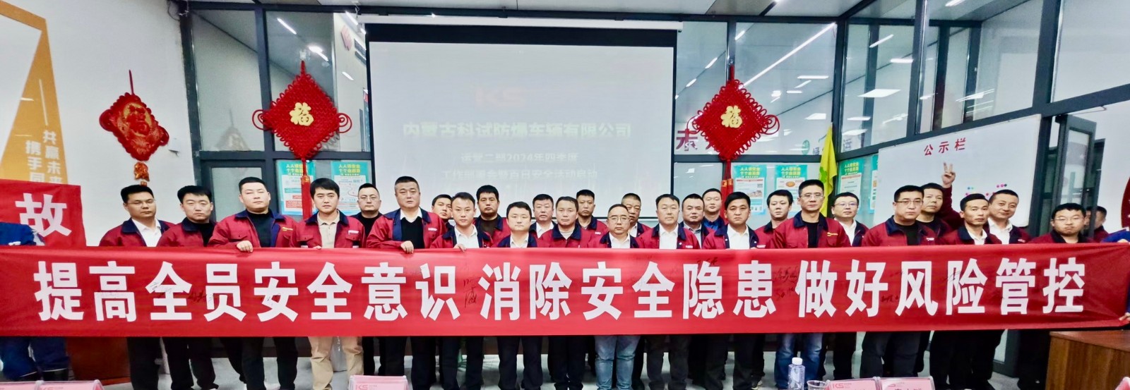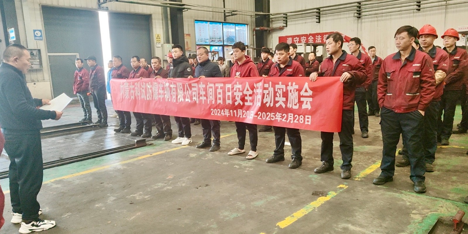 為落實好本屆“百日安全”活動,公司制定了《內蒙古科試防爆車輛有限公司2024-2025專項安全活動方案》,各部門、各服務隊以及大修車間根據公司方案制定各自詳細計劃。為提高全員的參與和重視程度,各部門分別組織了安全活動啟動儀式。