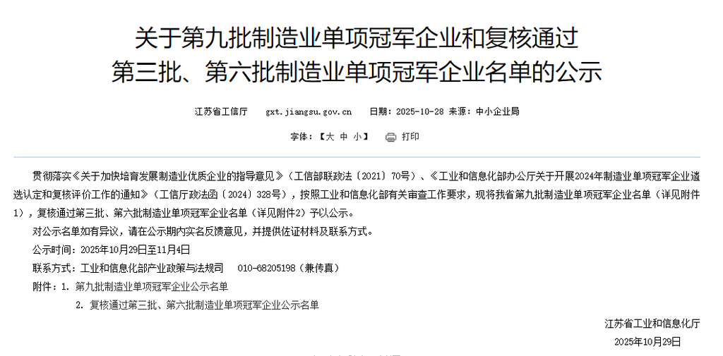 公司順利通過第六批國家級制造業單頂冠軍企業復核