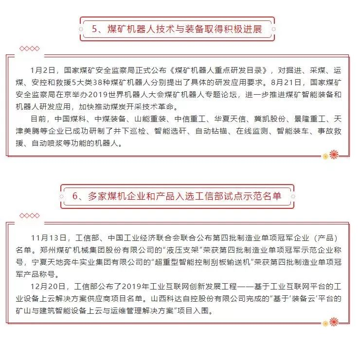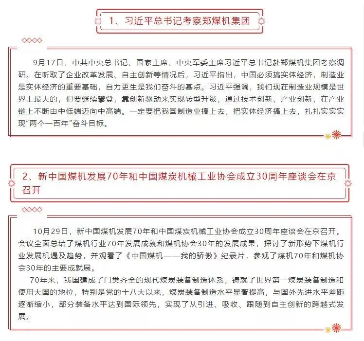 編者按:歲末年初,為總結2019年我國煤炭裝備制造業發生的大事要事,中國煤炭機械工業協會日前組織專家評議,揭曉了2019年度煤炭裝備制造業十大新聞,現予以公布。